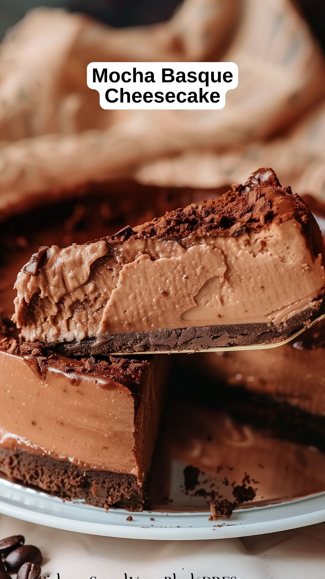 This mocha Basque cheesecake has a silky smooth texture with a lightly burnt top, making it chocolatey and indulgent. With its signature gooey center, my recipe is made without eggs or dairy and is served with a creamy coffee whip.