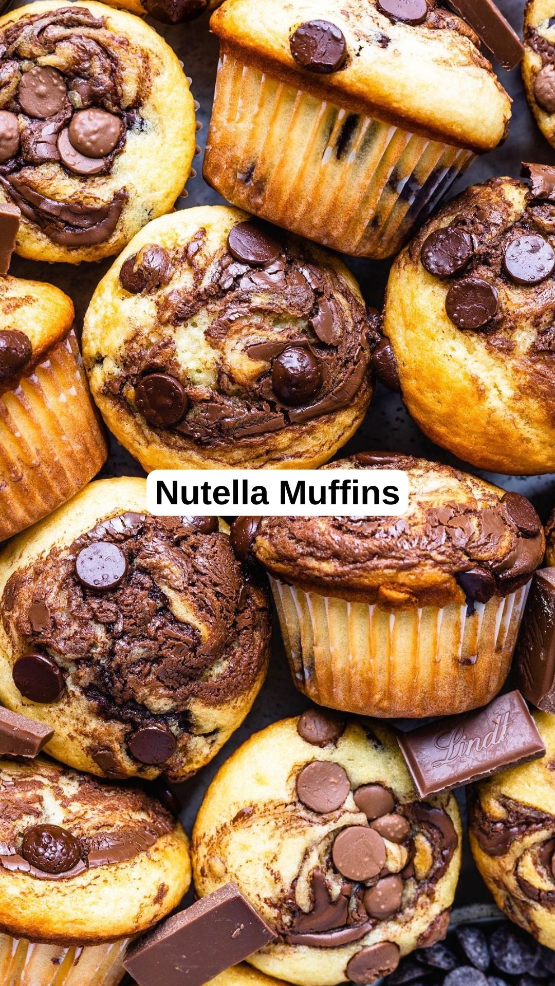 - Spoon the remaining Nutella on top of the muffins and use a toothpick to gently swirl it around. Sprinkle with extra chocolate chips if you like.