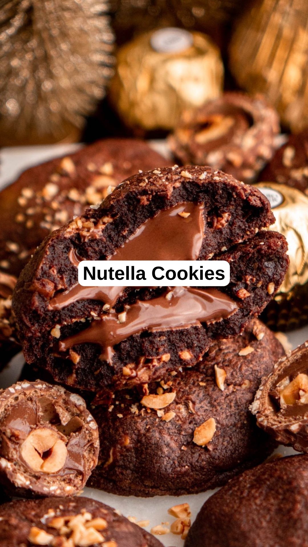 They boast the ultimate chocolate hazelnut flavor: With Dutch process cocoa powder for that rich dark chocolate taste and chunks of Ferrero Rocher in every bite, these cookies are bursting with chocolate hazelnut goodness.
