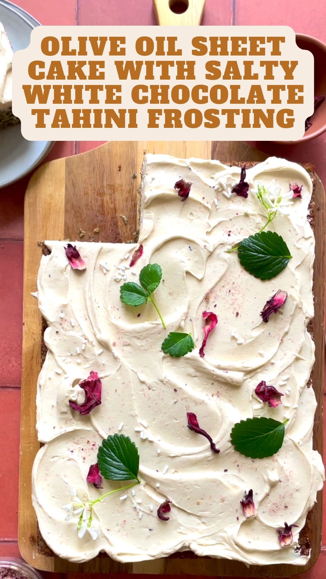Olive Oil Sheet Cake With Salty White Chocolate Tahini Frosting