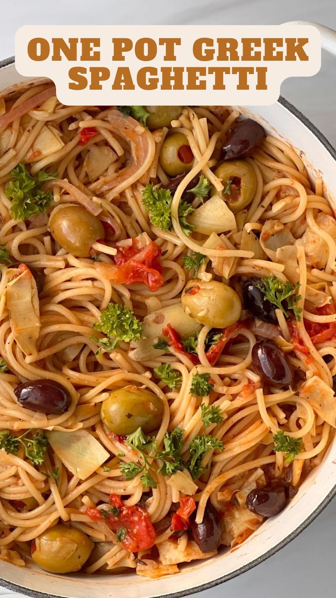2. Add the green olives, Kalamata olives, minced garlic, artichoke hearts, red onions, and tomatoes to the pot.