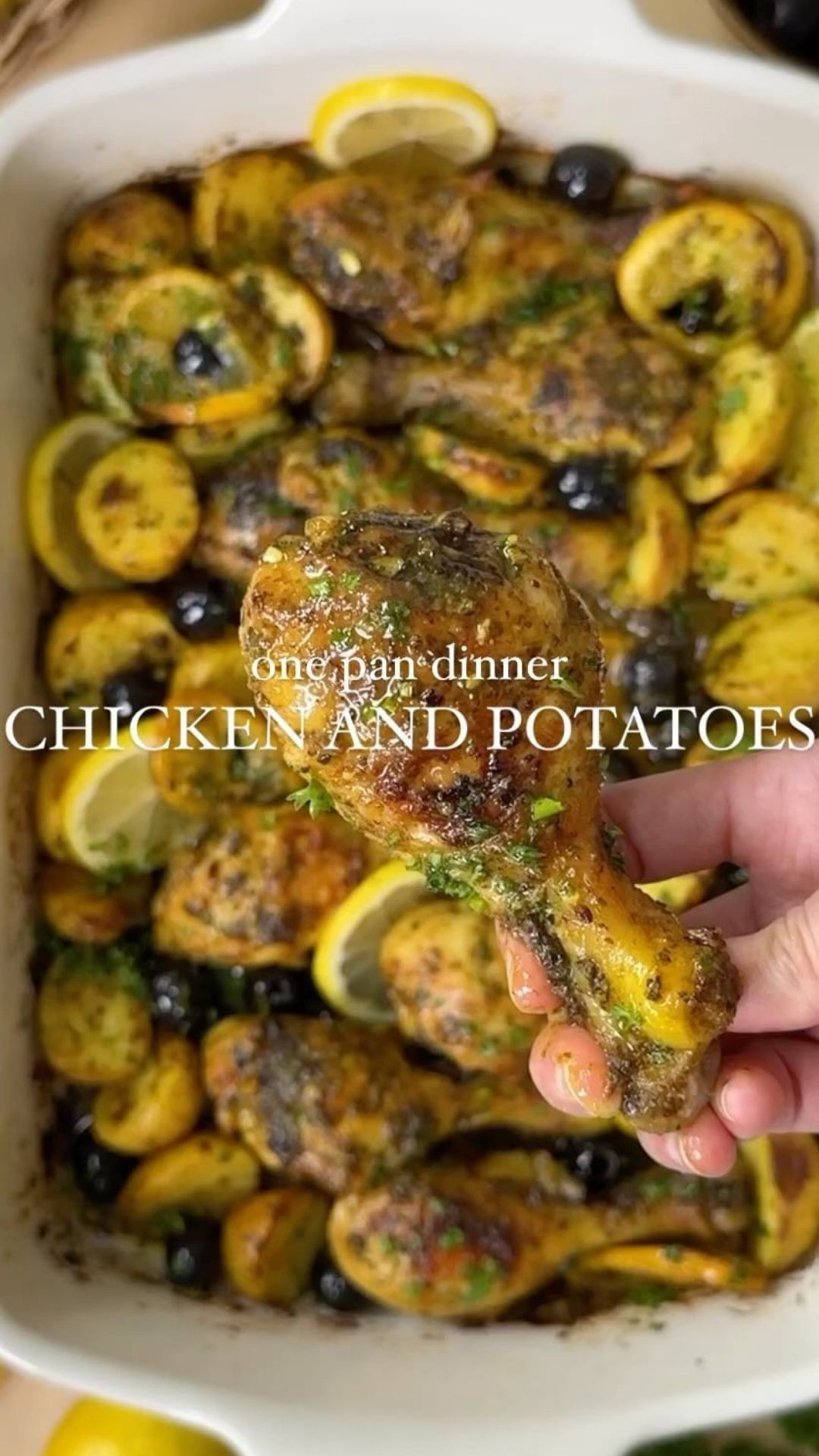 Here’s a simple one-pan dinner inspired by the famous Moroccan Chicken Tagine with olives and preserved lemons! When I was a kid, we had something like this every week, and nothing compares to my mom’s roasted chicken. This recipe is my twist on it, packed with flavor from the potatoes to the chicken to the marinade!