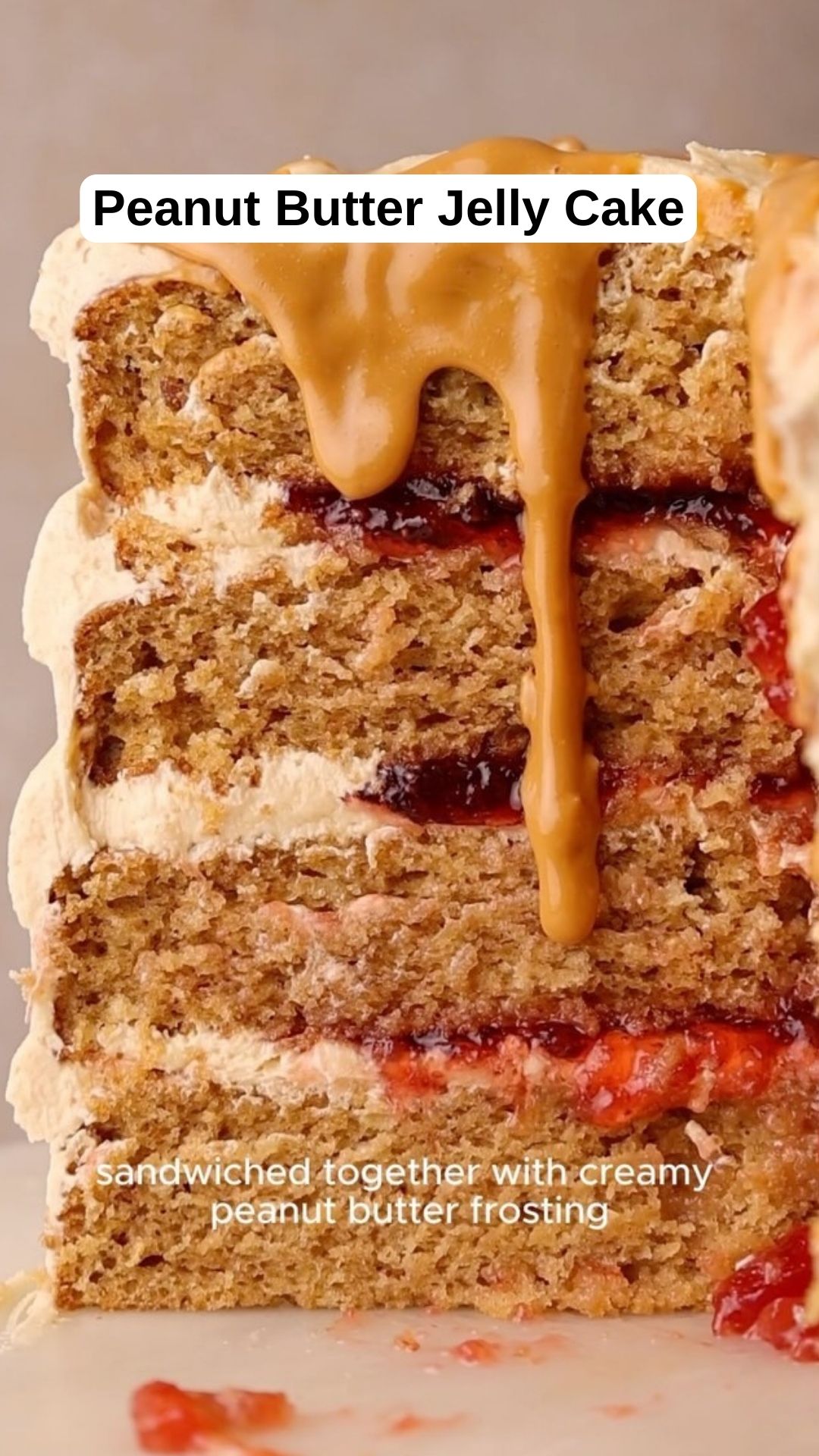 - Enjoy this rich, nutty, and indulgent Peanut Butter Jelly Cake!