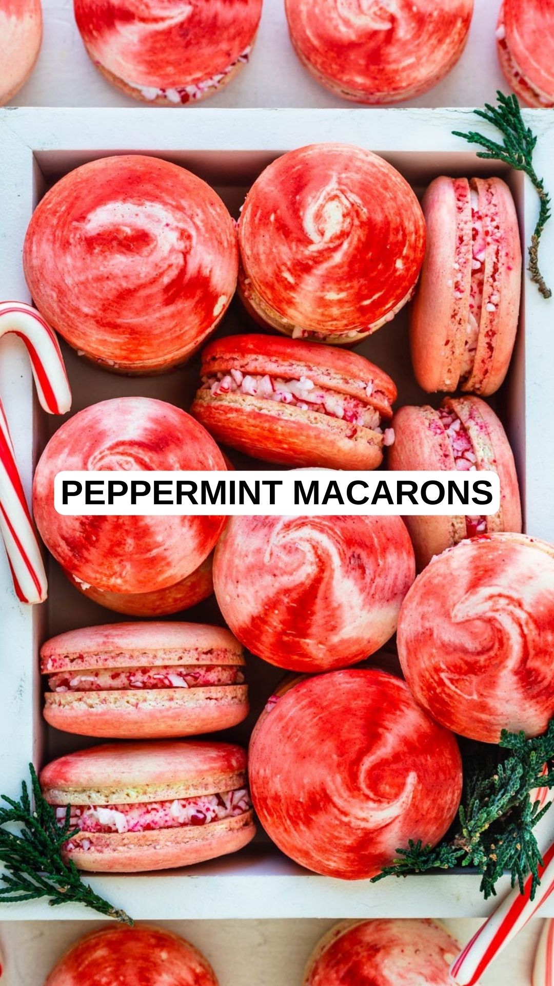 - Roll the edges of the macarons in crushed peppermint candy for a festive touch.