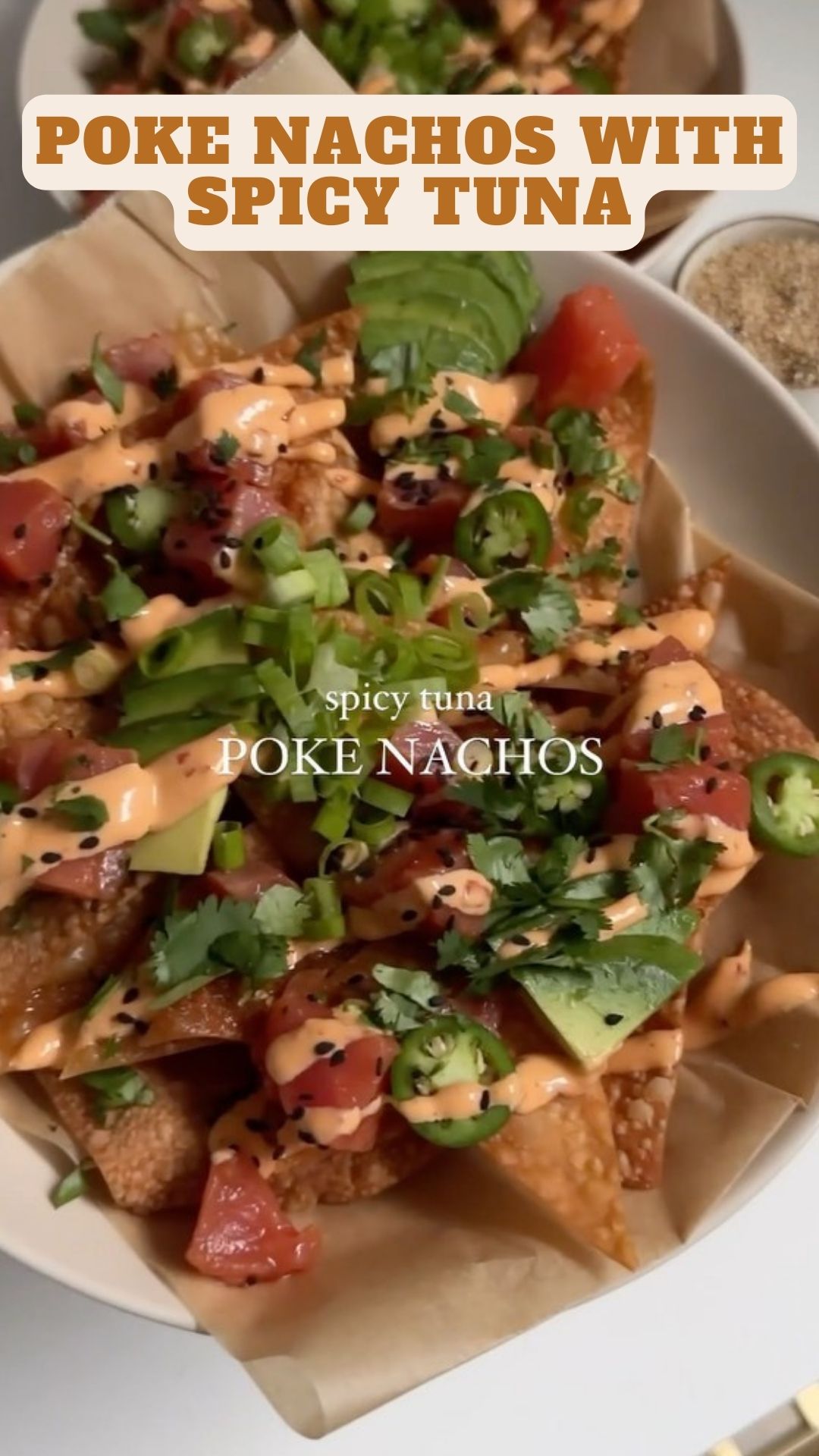 Nachos are a favorite meal for me, especially for dinner. They’re like crispy chips topped with ahi tuna, spicy mayo, and all sorts of yummy toppings! I enjoy adding green onions, avocado, mango, sesame seeds, cilantro, and unagi sauce. You know what’s even better? Transforming poke into poke nachos! It’s the best appetizer ever, and I always order it when I’m out, so we just had to recreate it at home, and it turned out even better. Instead of regular chips, we use wonton wrappers to make them extra crunchy to balance the spicy tuna’s melt-in-your-mouth goodness!