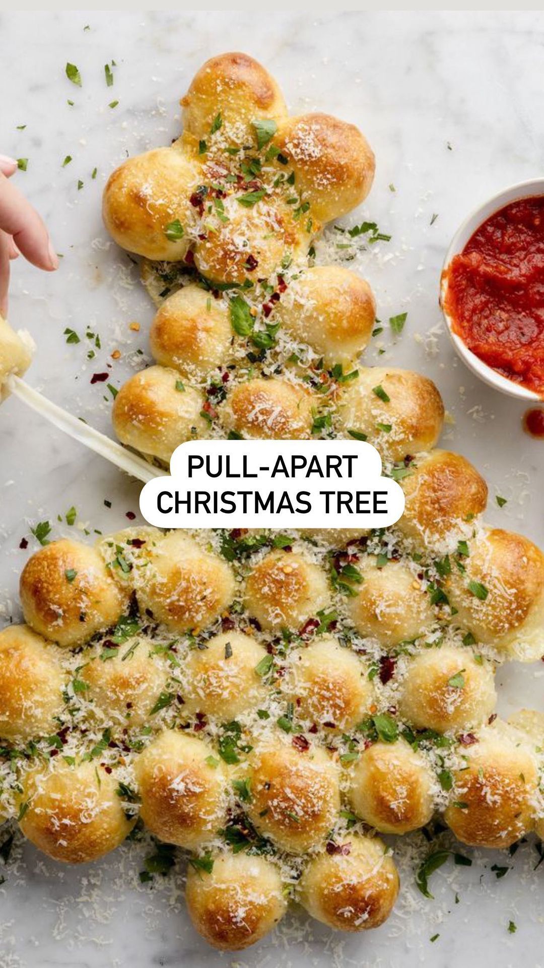 - While the pizza balls are baking, whisk together the melted butter, Parmesan, and herbs. Once the pizza balls are done, brush them with this mixture. Serve the warm pull-apart bread with marinara sauce for dipping. Enjoy your festive treat!