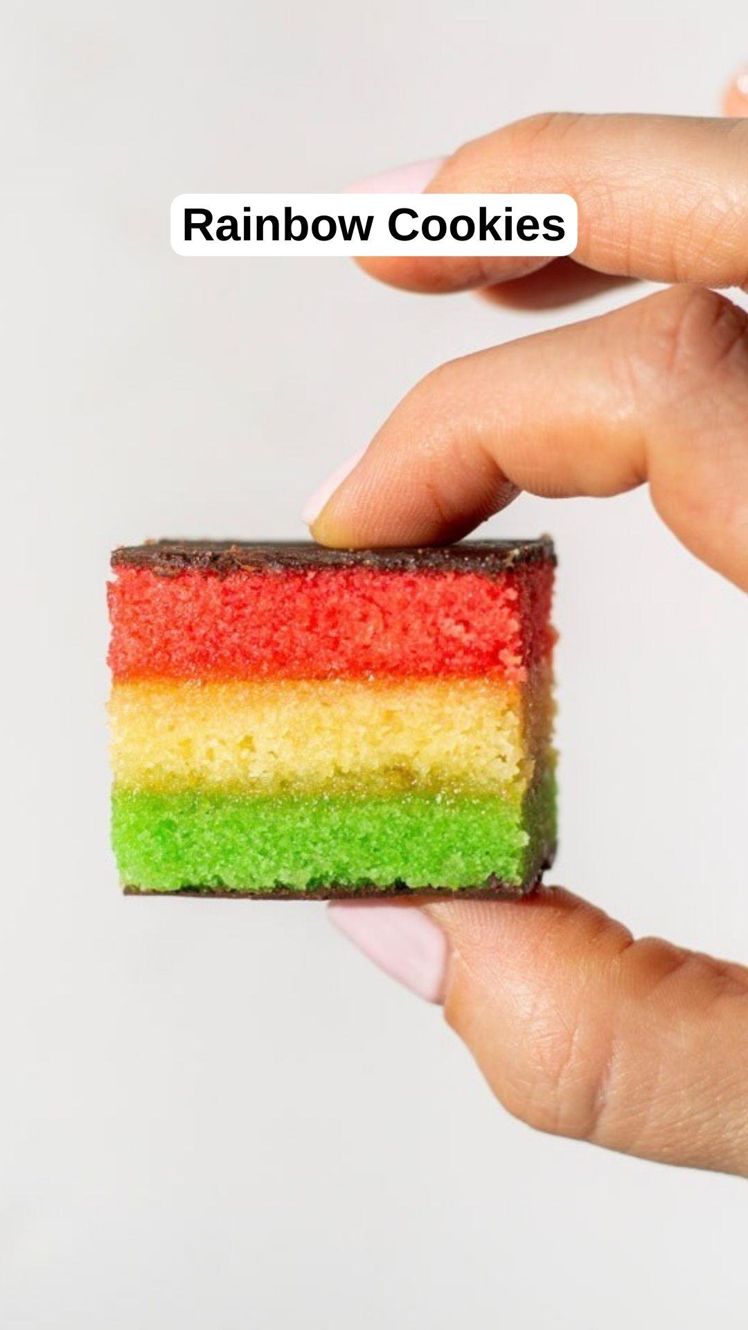 We love Italian rainbow cookies, also known as Venetians, tricolore cookies, or just rainbow cookies. These delightful treats have seven layers: three colored almond sponges, two jam layers, and a chocolate coating on both sides. They’re moist and light, yet dense from the almond paste. The chocolate shell adds a perfect texture and flavor. Somewhere between a cookie, cake, and petit four, these are a holiday favorite.