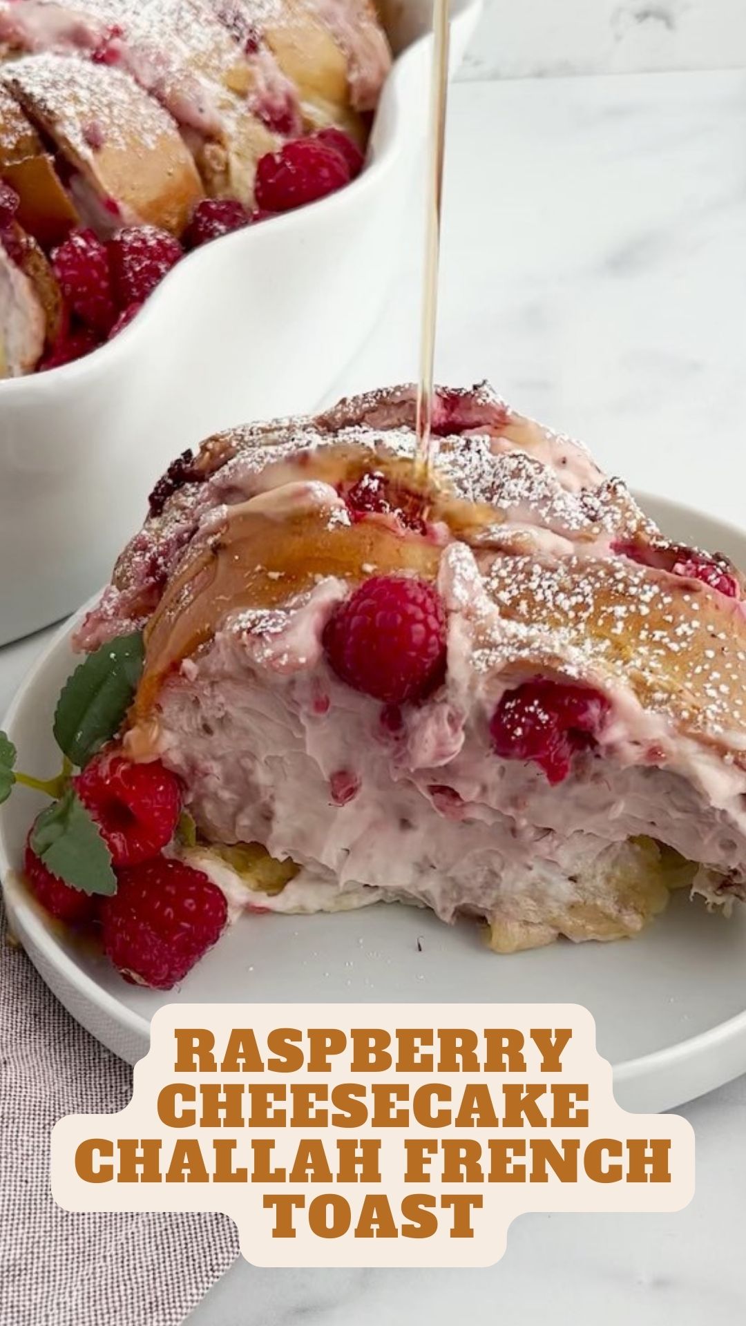 Imagine this: Raspberry Cheesecake Challah French Toast, stuffed with a sweet filling and baked to golden-brown perfection. It’s the ultimate breakfast or brunch delight, ideal for holidays, weekends, or any special occasion!