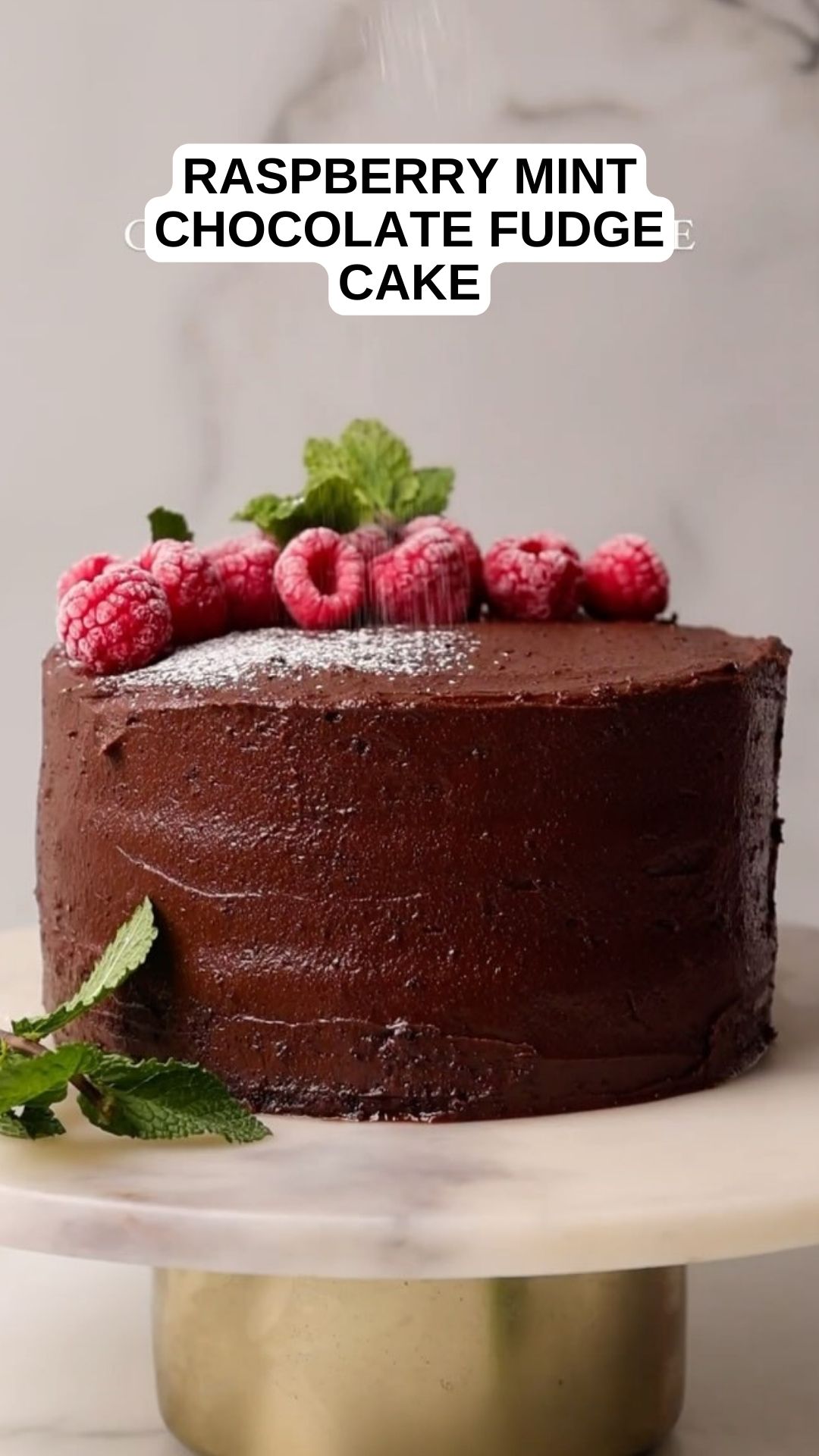 PrintRaspberry Mint Chocolate Fudge Cake