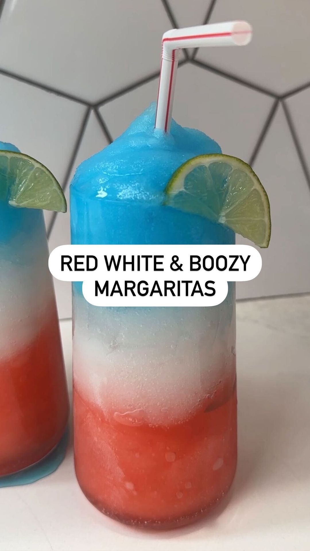 These margaritas are perfect for celebrating the 4th of July or enjoying all summer long. Make sure your mixtures are nice and slushy! The thicker they are, the easier they are to layer.