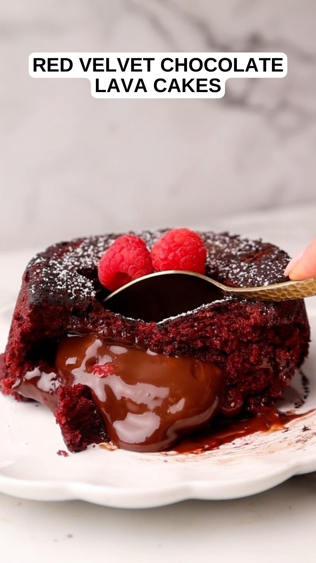 These Red Velvet Chocolate Lava Cakes are a delightful treat with a soft and tender red velvet cake exterior and a rich, oozing chocolate ganache center. Perfect for an indulgent date night dessert!