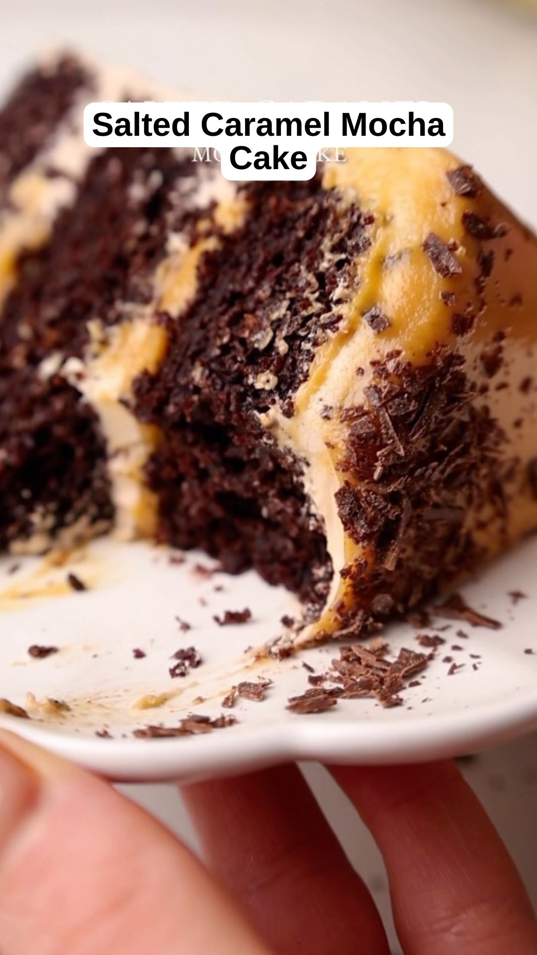 Introducing my Salted Caramel Mocha Cake. If you’re looking to bake something special this weekend and you love chocolate and coffee, this cake is for you. It features three layers of moist coffee-flavored chocolate sponge, creamy mocha buttercream, and a delicious salted caramel sauce.