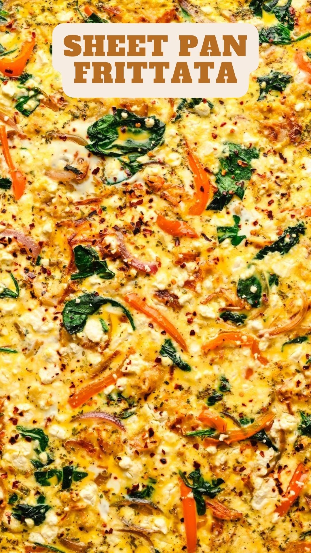 For a hassle-free breakfast for a big crowd or a week of meal prep, try out this simple and quick Sheet Pan Frittata! Throw in crispy hash browns, onion, pepper, spinach, and feta, or go wild with your favorite ingredients.