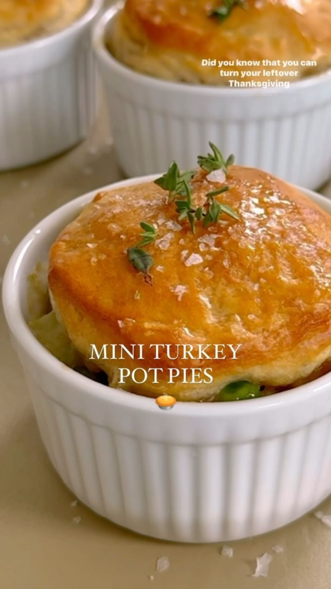 Here’s a recipe you can whip up using your leftover Thanksgiving turkey or even rotisserie chicken, for a quick and super tasty meal! It’s not only comforting but also kid-friendly, earning you a big parent win! You’ll enjoy all the goodness of a flaky homemade pot pie, but in mini form, without the fuss of making everything from scratch. I’m using store-bought biscuits for the topping, but you can also opt for puff pastry cut into circles—both options work great!