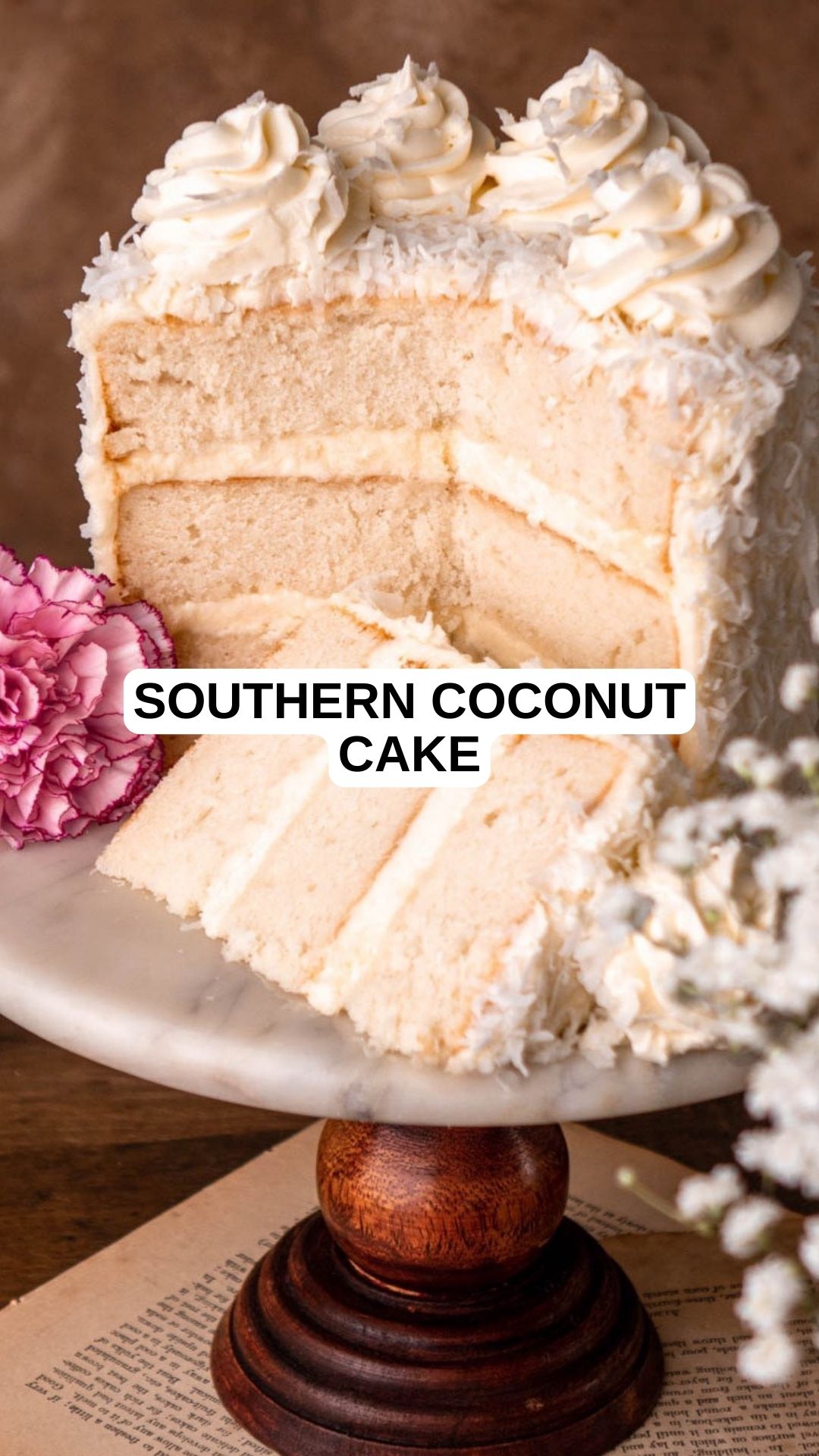 This is the ultimate coconut cake! It’s a light and fluffy southern-style cake, frosted with creamy coconut cream cheese frosting and topped with coconut flakes. Coconut lovers will go nuts for this one!