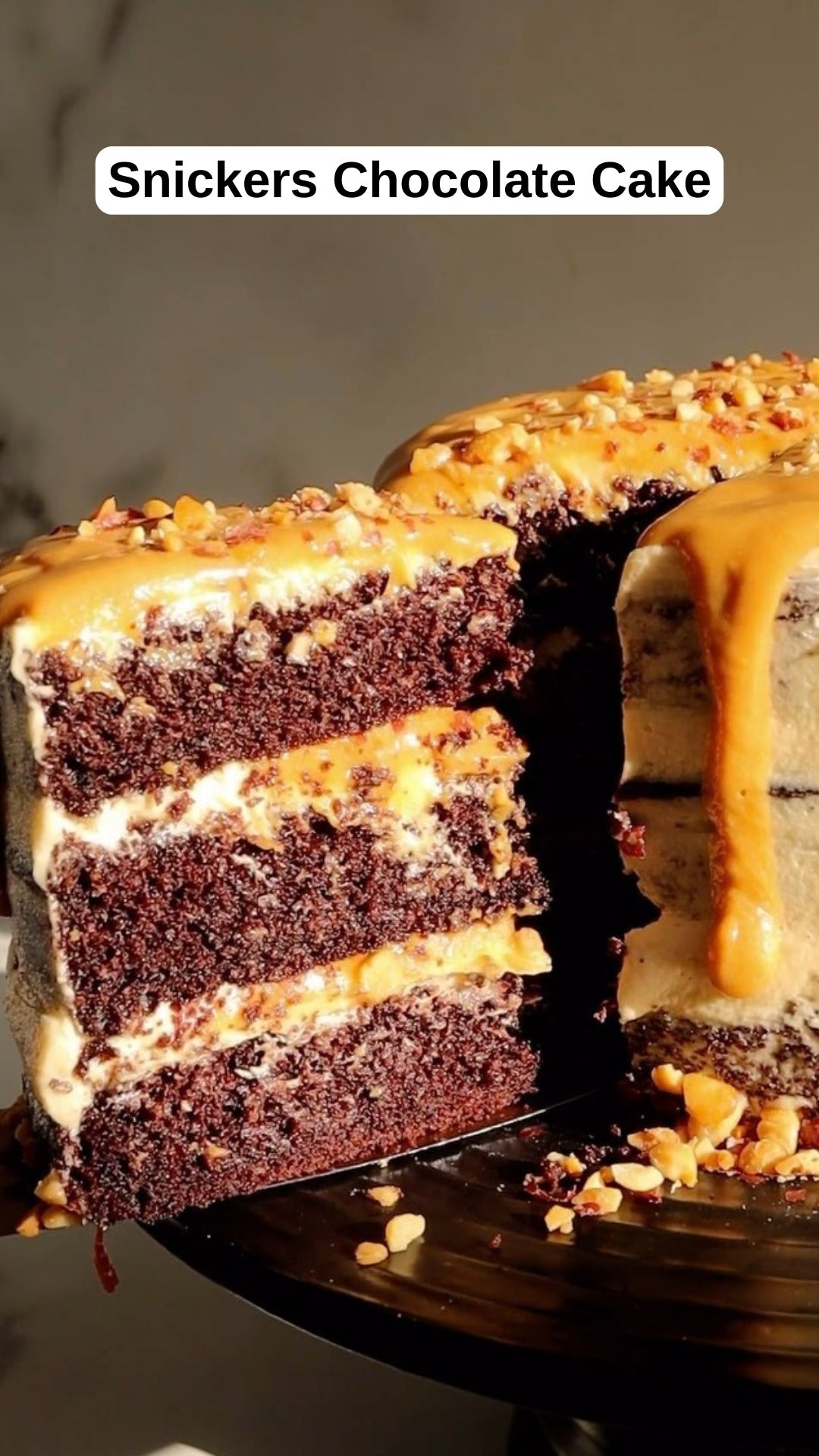 - Enjoy this rich, nutty, and indulgent Snickers Chocolate Cake!