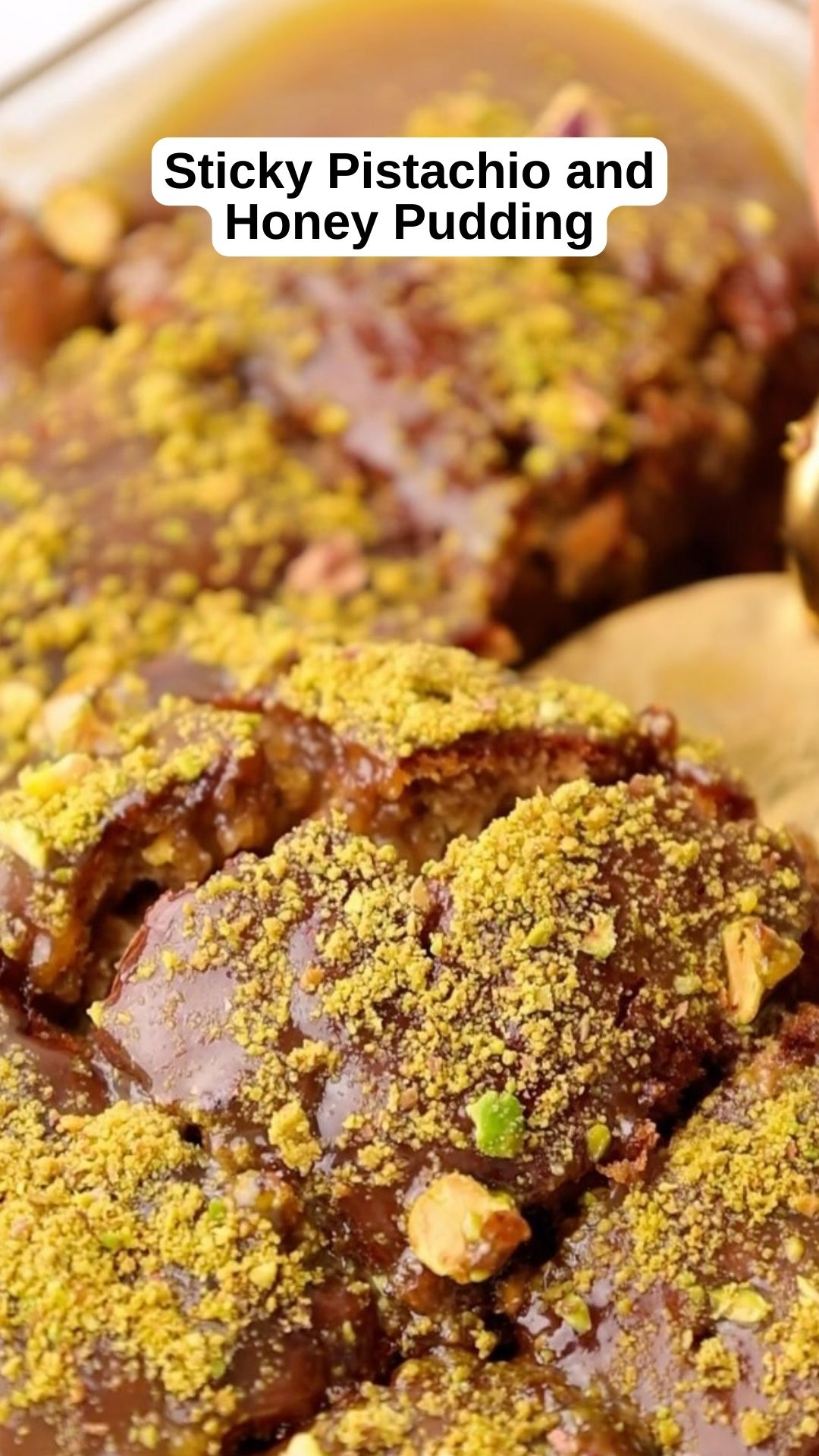 We start by making a gooey date paste for that soft texture. To achieve the lovely caramel honey flavor, we use brown sugar and honey, plus ground pistachios for a hint of salty nuttiness. The pudding is baked until golden and then covered in a rich honey toffee sauce that soaks through the sponge for an unbeatable gooey texture. Serve with ice cream or custard for an irresistible dessert!