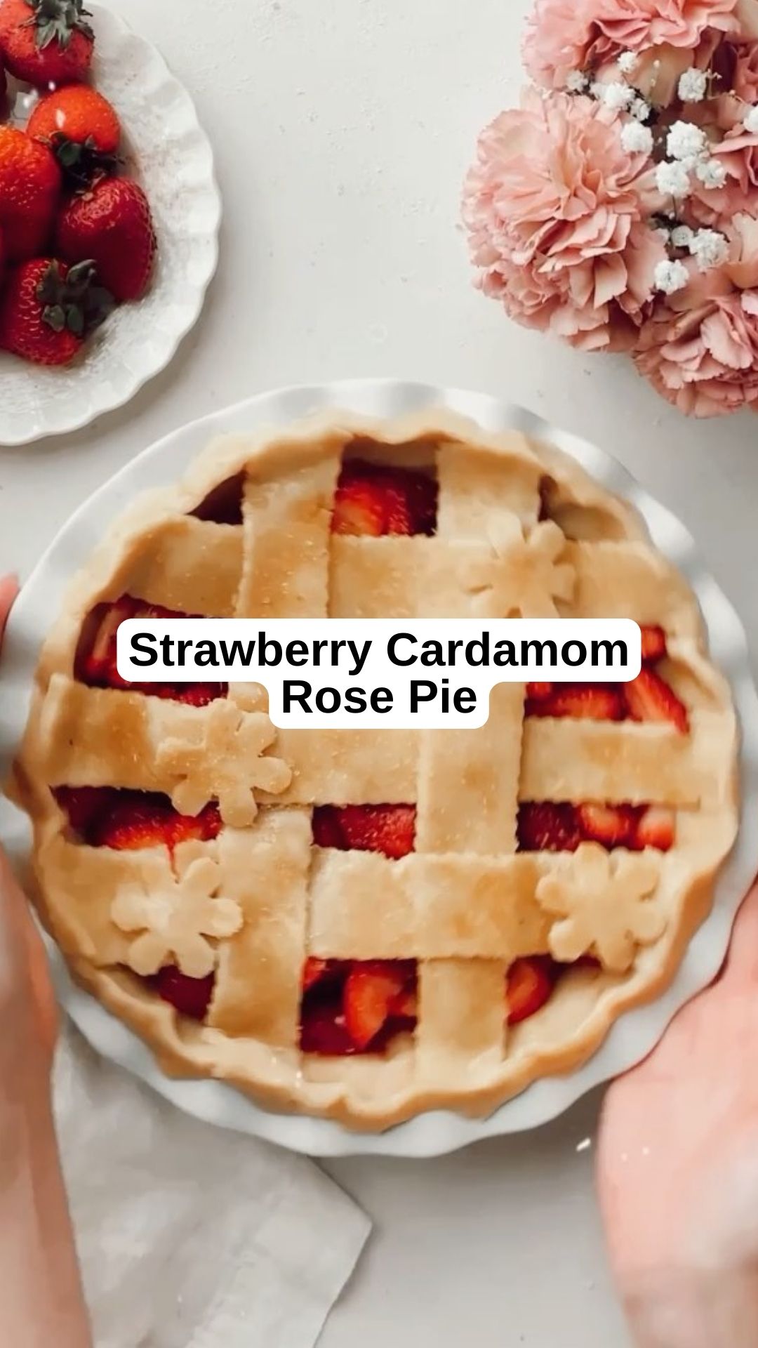 This is the ultimate summer pie, especially for strawberry lovers! It features a buttery, flaky crust filled with fresh strawberries flavored with rose water and cardamom. The pie is topped with a beautiful lattice crust and baked to golden perfection.