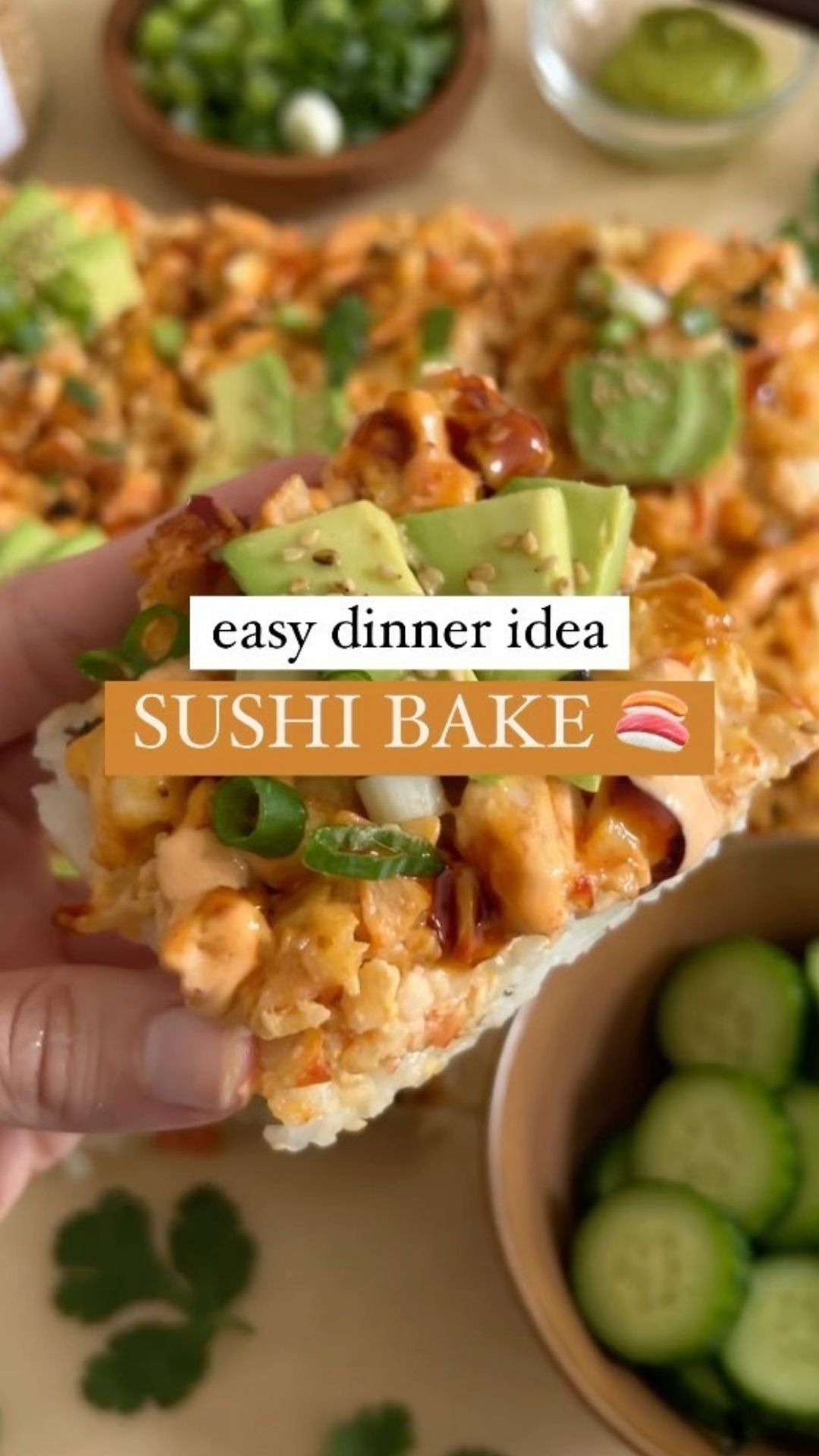 - – Drizzle with spicy mayo and unagi sauce. Top with avocado, green onions, and sesame seeds. Enjoy your delightful Sushi Bake!